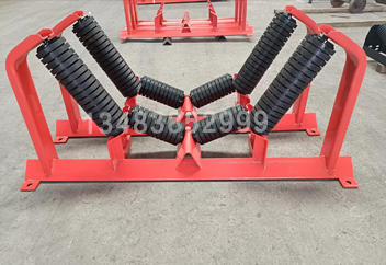 帶式輸送機緩沖托輥組安裝在輸送機受料段的下方,減小落料時物料對輸送帶的沖擊,以延長輸送帶的使用壽命。
